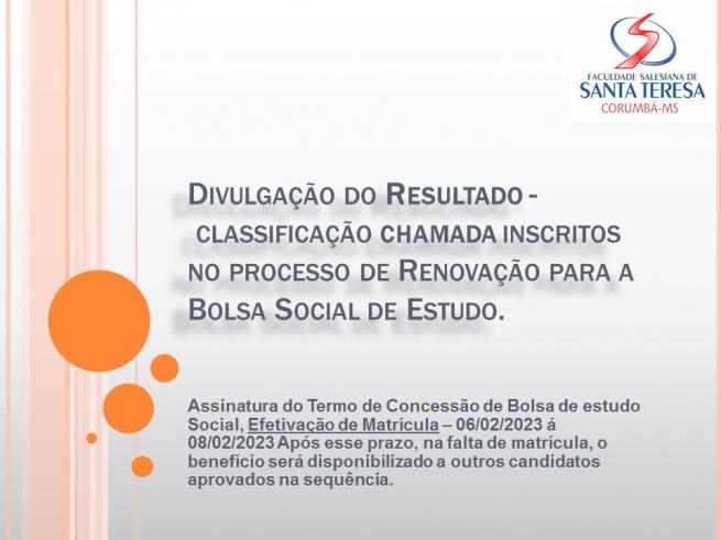Lista de Chamada - Renovação para a Bolsa Social de Estudo