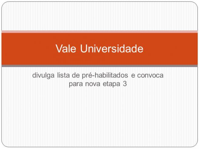 Vale Universidade divulga lista de pré-habilitados e convoca para nova etapa 3
